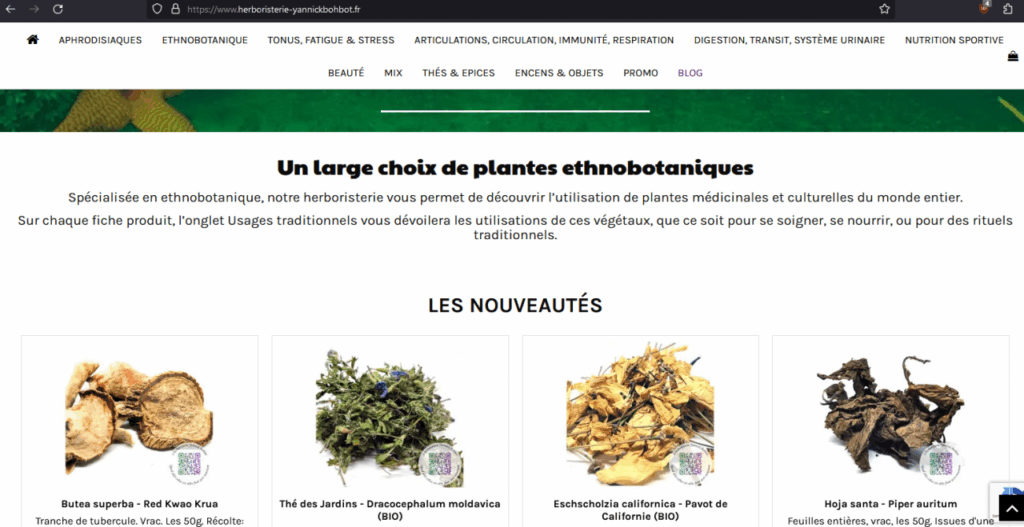Et effectivement, on constate que la boutique entretien un certain flou, proposant des plantes médicinales bien connues comme la valériane, la camomille ou le ginseng, et des plantes « ethnobotaniques » comme le bobinsana, le sinicuichi, le kanna ou l’ajo sacha, ainsi que des mélanges d’herbes à fumer.